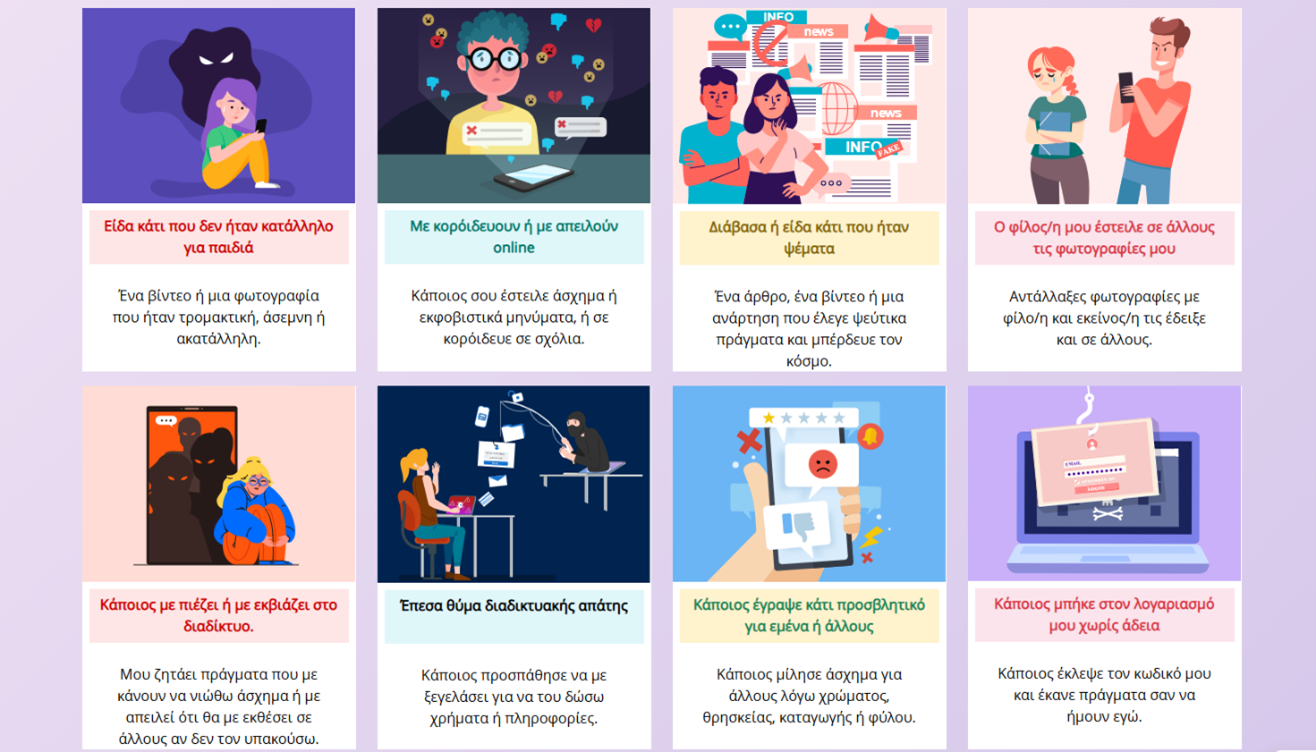 Σελίδα αναφορών για παιδιά: https://saferinternet4kids.gr/your_safe_place/