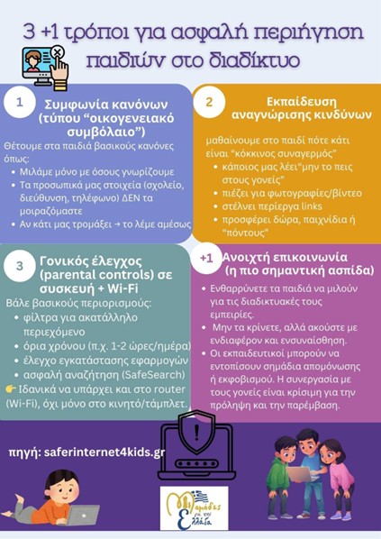 Το διαδίκτυο αποτελεί αναπόσπαστο κομμάτι της καθημερινότητας των παιδιών μας. Μαζί με τις ευκαιρίες για μάθηση, επικοινωνία και δημιουργία, όμως, μπορεί να κρύβει και κινδύνους που συχνά τα παιδιά δυσκολεύονται να διαχειριστούν ή να εκφράσουν.